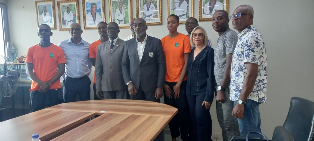 Le vendredi 16 février 2023 toute trouvée pour le président de la fédération ivoirien de taekwondo pour féliciter les taekwondo in Ivoiriens. En effet, lors de la compétition de sélection des athlètes de taekwondo devant participer aux jeux olympiques, une taekwondo in s’est particulièrement distinguée. C’est Bathily Astan Catherine dans la catégorie de + de 70 kg qui a obtenu le ticket pour les jeux olympiques de Paris . Après Cheick Cissé Salah et Ruth Ggagbi , la Côte d’Ivoire accroît ses chances de médailles olympiques avec dette jeune athlète, véritable espoir du taekwondo ivoirien . Le président de la fédération Jean -Marc Yacé lui a prodigué de sagesse conseils et polis la soutenir avant et pendant compétition des J.O de Paris.
